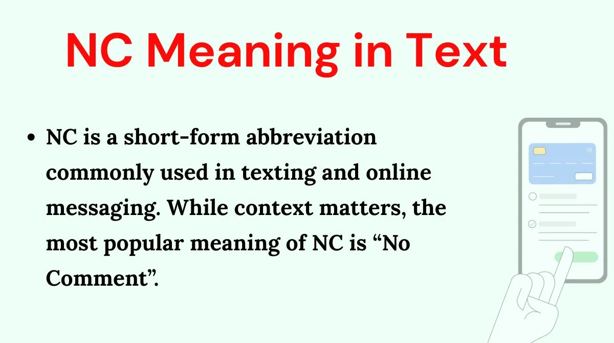 NC is a small but powerful abbreviation that saves time in texting and online chats. Whether you use it as “No Comment” to stay neutral or “Nice” to react casually, understanding its context is key.