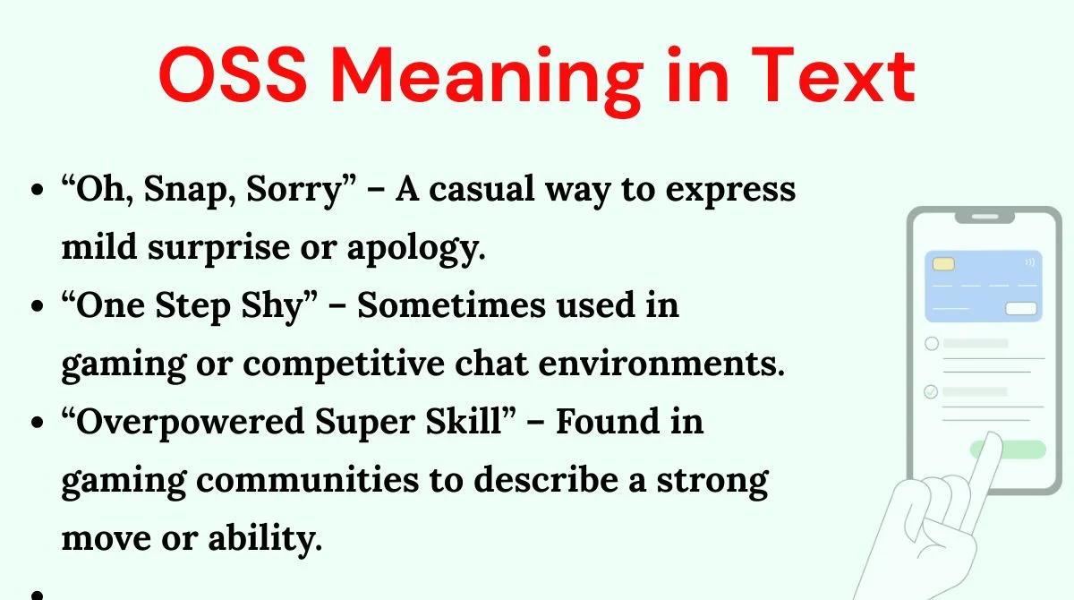 Understanding acronyms like OSS helps you stay fluent in digital conversations. Whether it’s expressing surprise, apologizing casually, or commenting on gaming strategies, knowing the context is key.