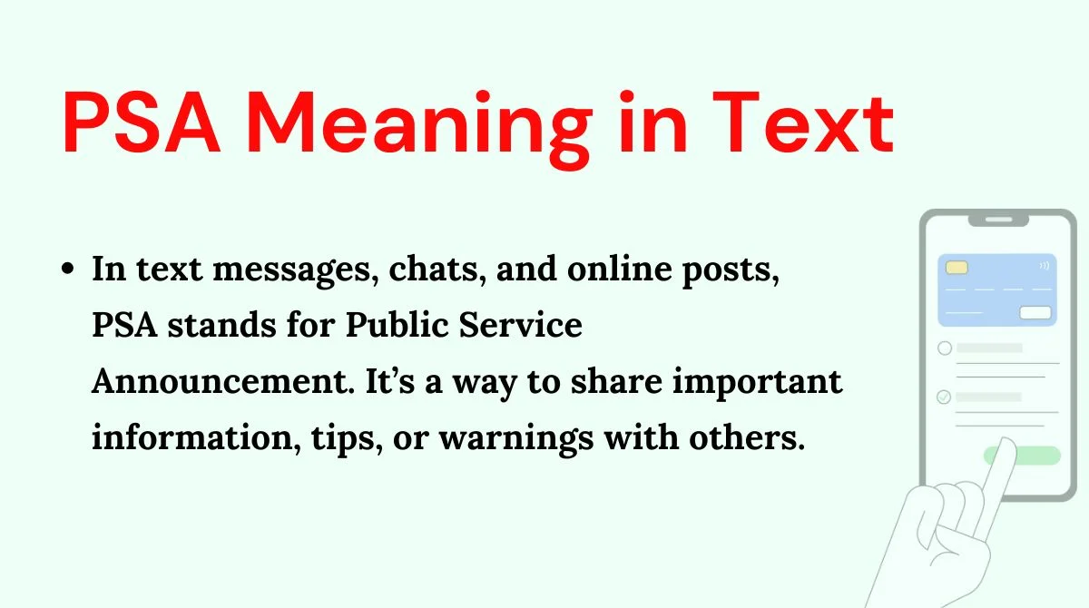 Understanding PSA meaning in text helps you navigate online conversations smoothly. Whether it’s a friendly reminder, a warning, or just a tip, PSA makes your messages concise and clear.