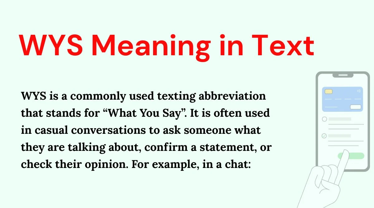 WYS is a simple yet handy abbreviation in modern texting, representing “What You Say”. It helps make conversations faster, clearer, and more playful.